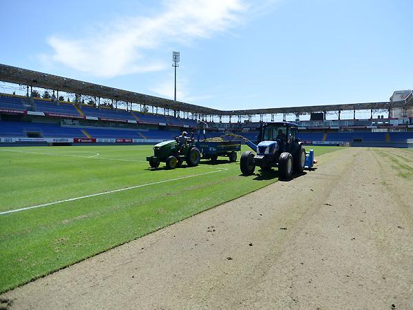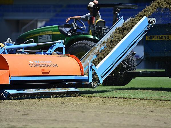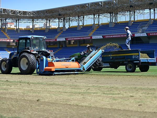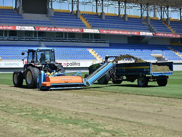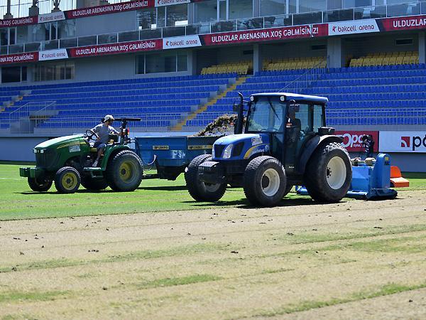 8-ci km stadionunun ot örtüyü dəyişdirilir (FOTOLAR)