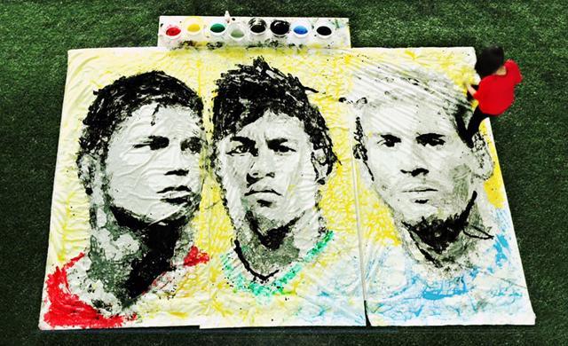 Bu qız topla Messi ilə Ronaldonun şəklini çəkir (VİDEO)