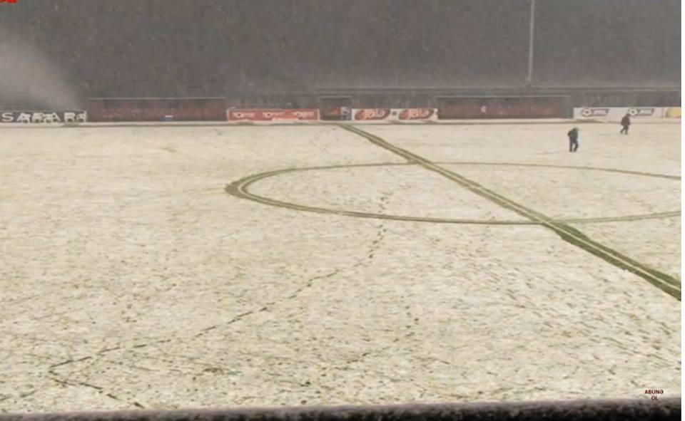 Qəbələ şəhər stadionunda qar (FOTOLAR)