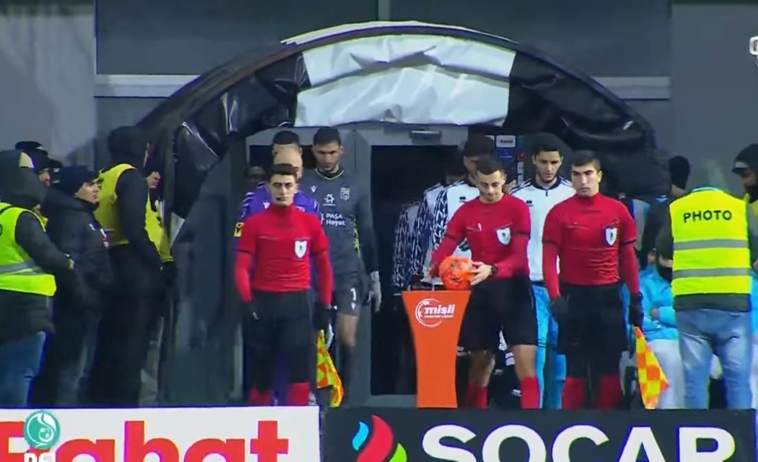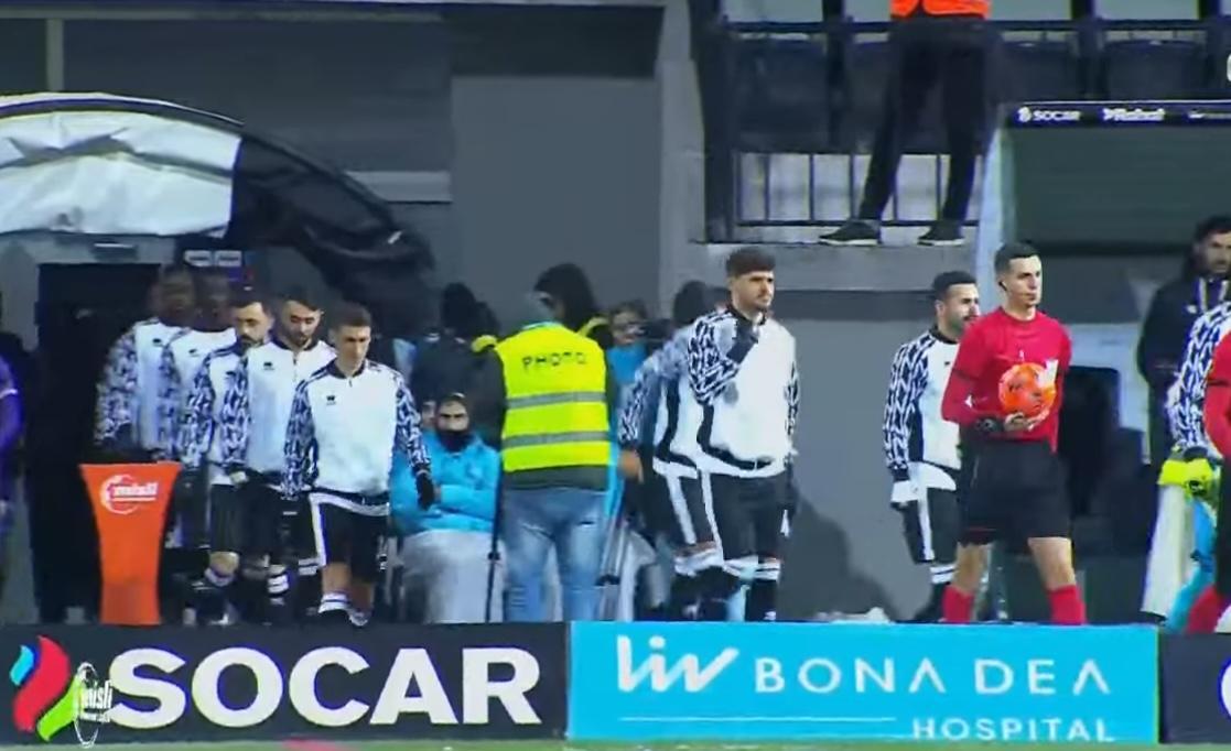 Meydan ağ-yaşıl, top və xətt qırmızı -