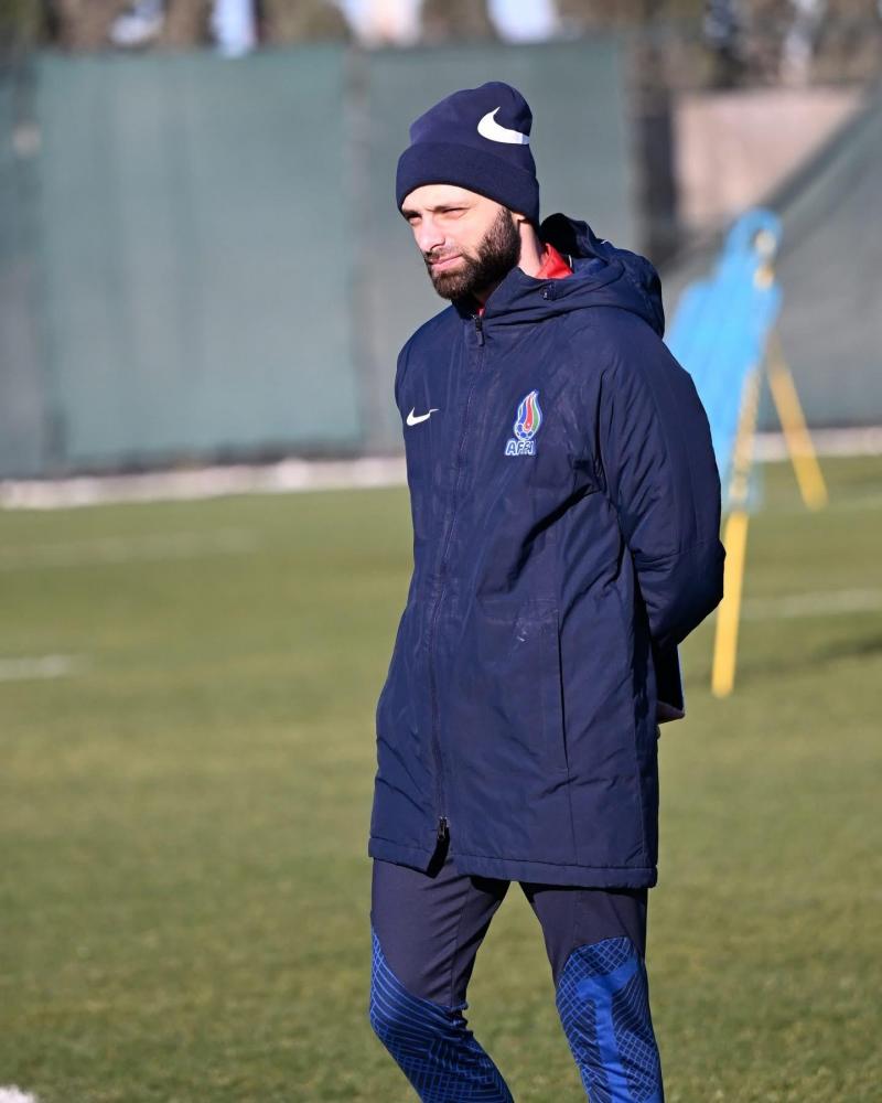 Qara Qarayev məşqçi kimi ilk dəfə millinin məşqində -