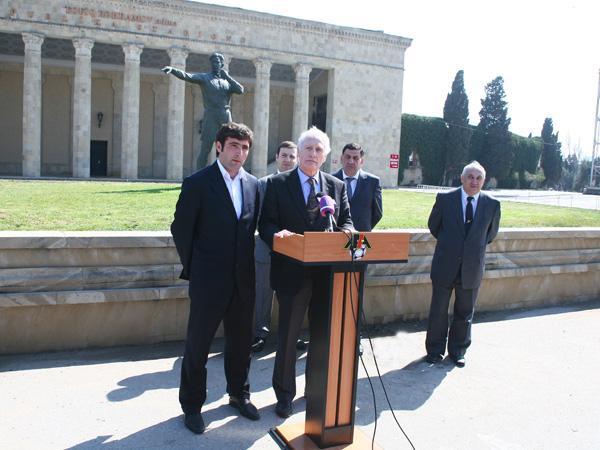 Hans Tilovski Tofiq Bəhramovun abidəsi önündə (FOTOSESSİYA)