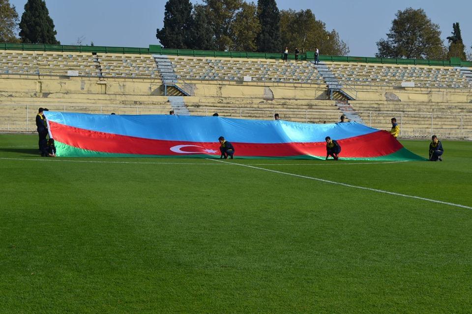 Meydanda həmçinin böyük ölçülü üç rəngli bayraq açılıb. Bundan əlavə, stadionda Azərbaycanın Respublikasının Dövlət himni hərbi orkestr tərəfindən ifa olunub.