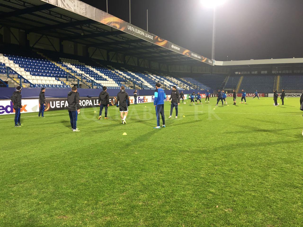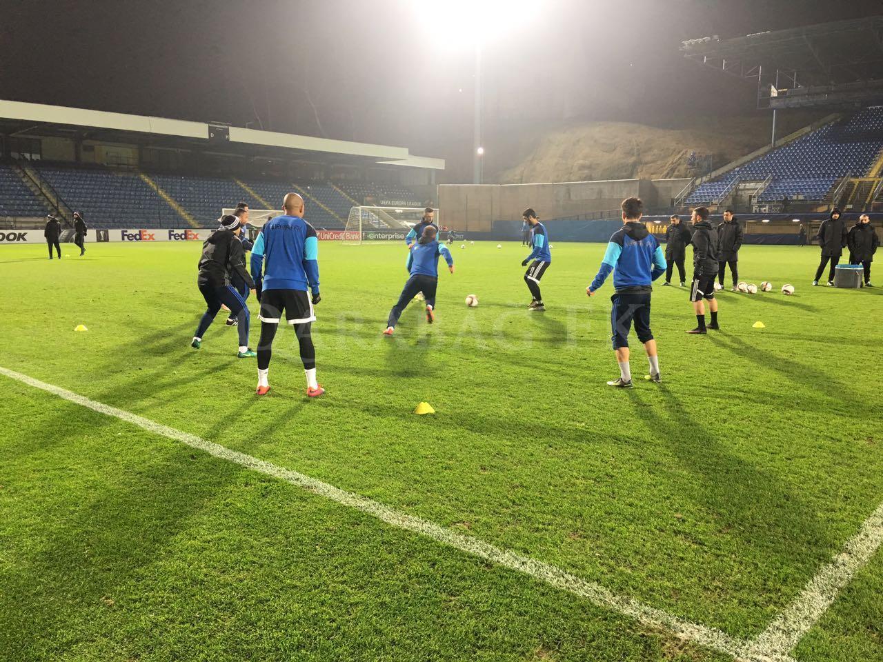 Avropa Liqasının qrup mərhələsinin V turunda səfərdə "Slovan"la qarşılaşacaq "Qarabağ" oyunun keçiriləcəyi "U Nisi" stadionunda son məşqinə çıxıb.