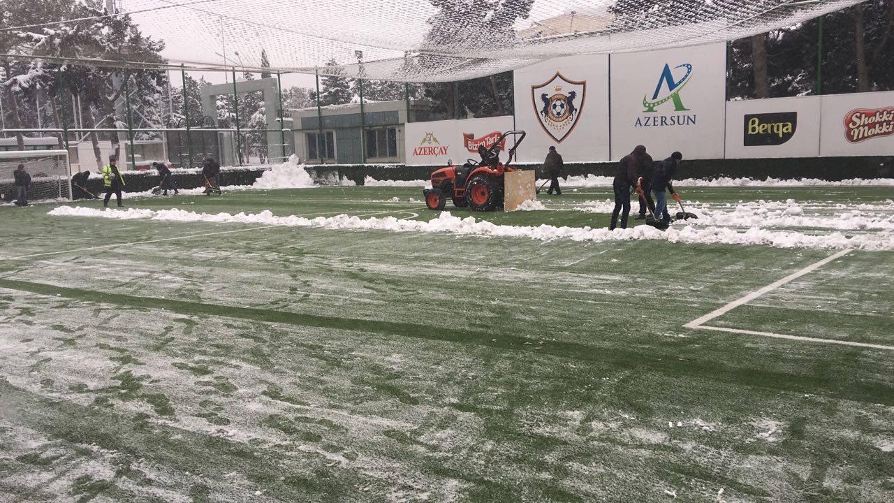 Qol.az-ın xəbərinə görə, Bakıya güclü qar yağmasına və meydançanın ağa bürünməsinə baxmayaraq, baş məşqçi Qurban Qurbanov bugünə də məşq təyin edib. Bu məqsədlə “Azərsun Arena”nın təbii və süni örtüklü meydançalarının qardan təmizlənməsinə başlanılıb.