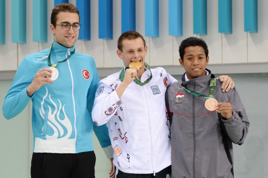 Bakı Su İdman Sarayında keçirilən üzgüçülük yarışlarının üçüncü günündə də medal qazanan Azərbaycan atleti Maksim Şemberev İslamiadada ikiqat çempionluğunu rəsmiləşdirib.