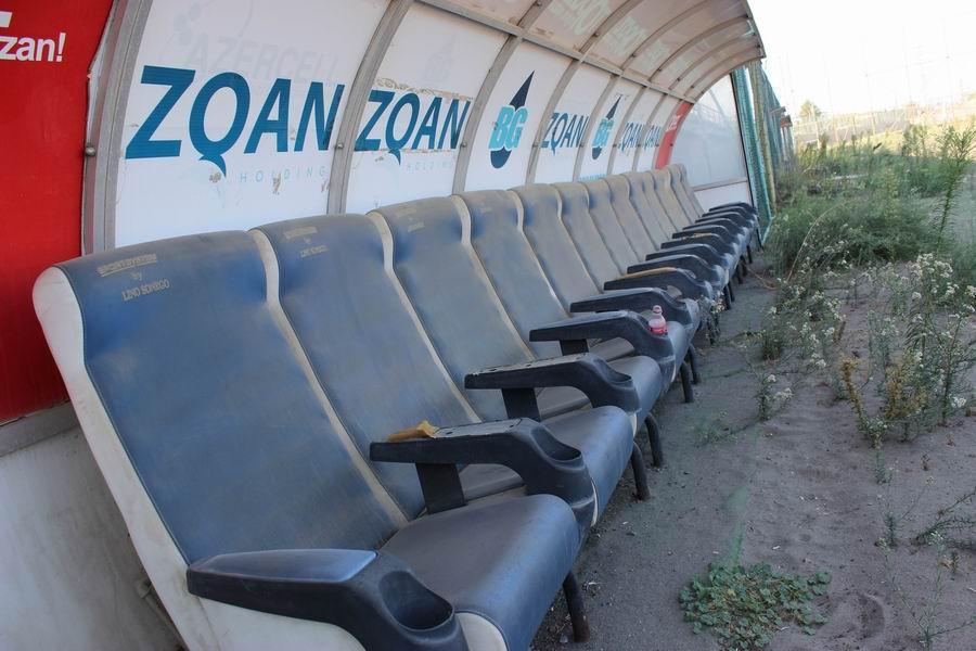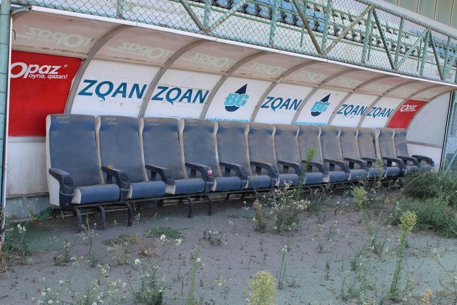 Daha sonra “Bakı” klubunun əsas stadionuna getdim. Boş qalan, toz içində olan tribunalar, əvvəlkinə nisbətən zərər görmüş ot örtüyü, qapı torlarının olmaması və ya cırıq olması insanda qəribə hislər yaradır. Bomboş, sükut dolu anlarını yaşayan stadion sanki əldən düşüb, gənckən qocalıb...