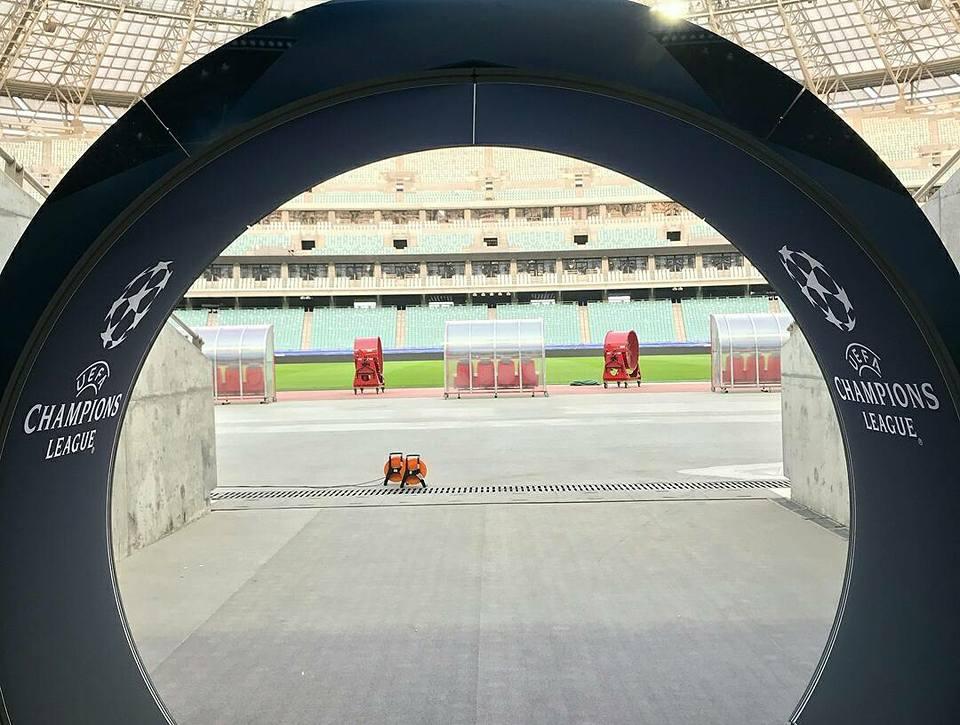 Qarabağ"ın sabah Çempionlar Liqasının qrup mərhələsinin ikinci turunda "Roma"nı qəbul edəcəyi Bakı Olimiya stadionunda stadionunda hazırlıq işləri davam edir.