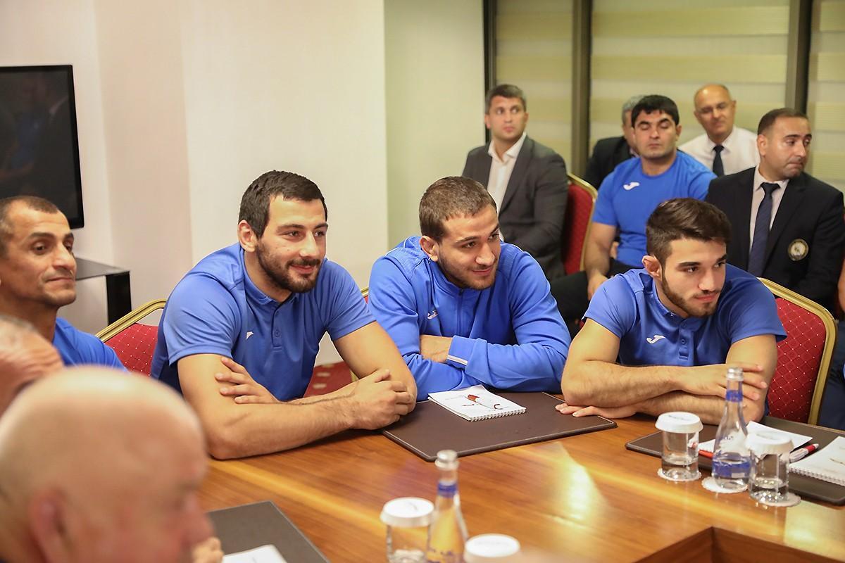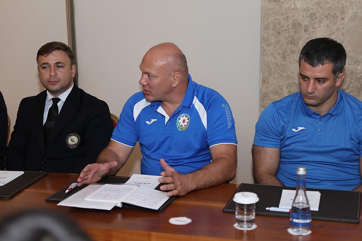 Qol.az-ın məlumatına görə, tədbirdə əvvəlcə kişilərdən ibarət yığmanın baş məşqçisi Ruslan Maşurenko və onun qadın millisindəki həmkarı Natiq Bağırov nüfuzlu yarışa hazırlıq barədə məlumat veriblər. Onlar müxtəlif ölkələrdə yüksək səviyyədə təlim-məşq toplanışları keçdiklərini və ayrı-ayrı turnirlərdə medallar qazandıqlarını diqqətə çatdırıblar. Hər iki mütəxəssis mundialda layiqli nəticələr göstərmək üçün əllərindən gələni edəcəklərni vurğulayıb.