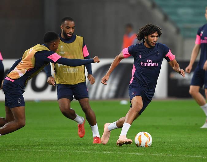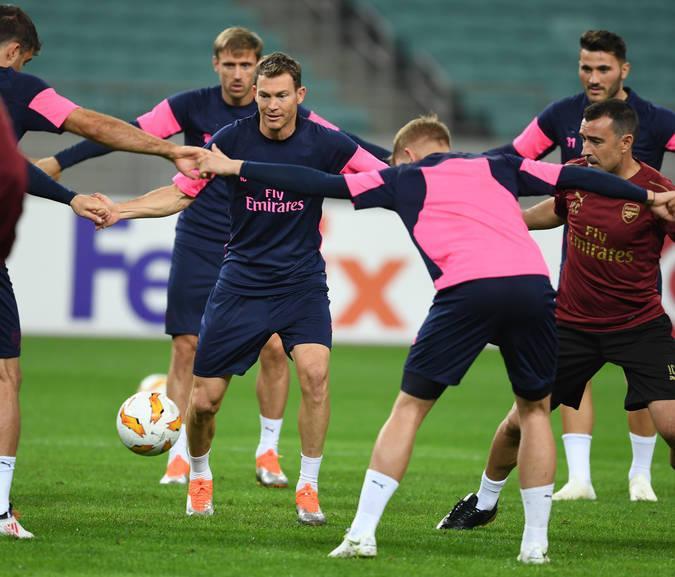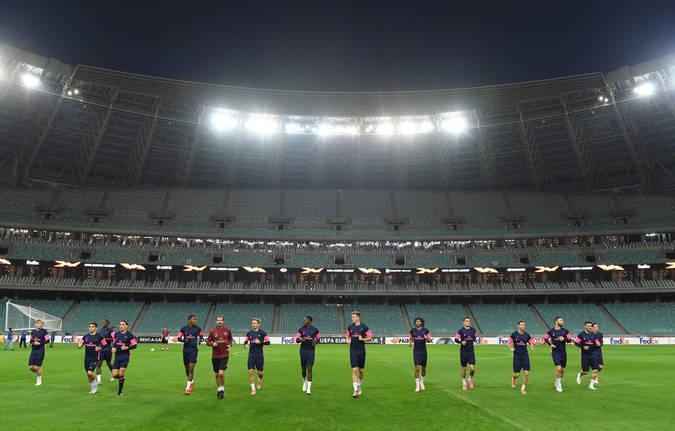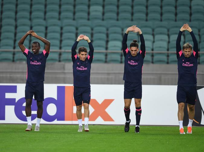 Avropa Liqasının qrup mərhələsində sabah "Qarabağ"ın qonağı olacaq "Arsenal" qarşılaşmanın keçiriləcəyi Bakı Olimpiya Stadionunda məşqə çıxıb.