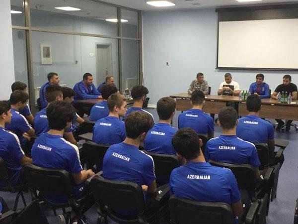 Qurban Qurbanov U-17 millimizlə görüşdü -  Şəkillər
