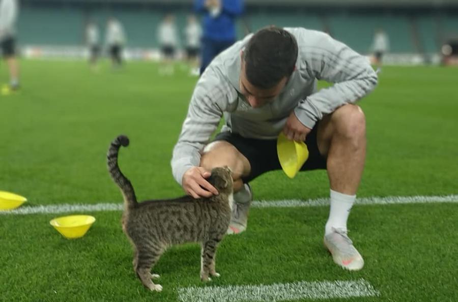 Qol.az-ın məlumatına görə, 3 həftə öncə London klubunun futbolçuları ilə şəkilləri yayılan Bakı Olimpiya Stadionunun pişiyi bu dəfə Ağdam təmsilçisinin yarımmüdafiəçisi Qara Qarayevlə görüntülənib. Qara "Vorskla" ilə oyunöncəsi keçirilən məşq zamanı pişiklə xeyli maraqlanıb.