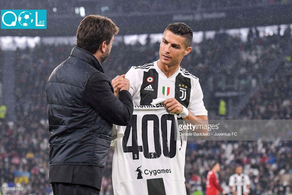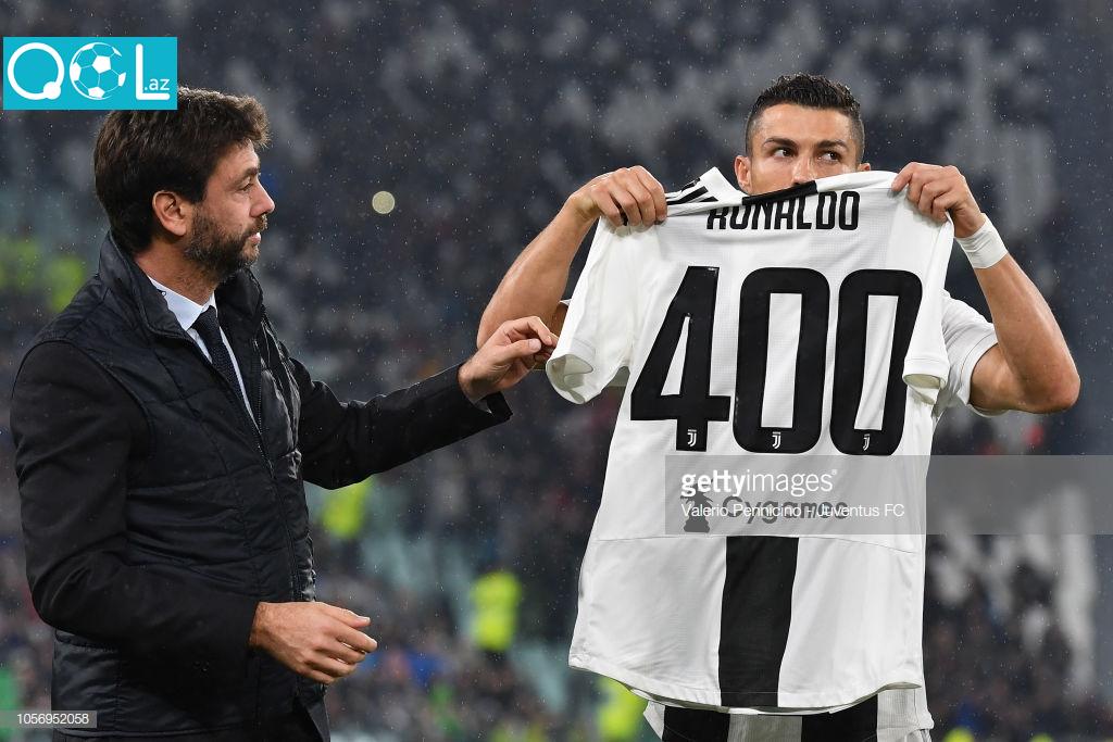 Qol.az-ın Turin təmsilçisinin rəsmi “Twitter” səhifəsinə istinadən yaydığı xəbərə görə, dünən “Kalyari” ilə çempionat oyunundan əvvəl portuqaliyalı superulduza klub rəhbərliyi tərəfindən üzərində 400 rəqəmi yazılmış forma hədiyyə olunub. 33 yaşlı futbolçuya mükafatı “qoca sinyora”nın prezidenti Andrea Anyelli təqdim edib.