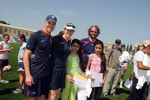 ABŞ-ın qadınlardan ibarət milli komandasının keçmiş oyunçusu Sindi Parlou və amerikalı məqçi-təlimçi Con Koun hazırda Azərbaycanda səfərdədir. ABŞ-ın ölkəmizdəki səfirliyindən Qol.Az-a verilən məlumata görə, S.Parlou və C.Koun 500-dən çox qız və oğlan, eləcə də azərbaycanlı məşqçilərlə futbolun fundamental əsaslarını və komanda işinin vacibliyini öyrətmək istiqamətində birgə çalışacaqlar.