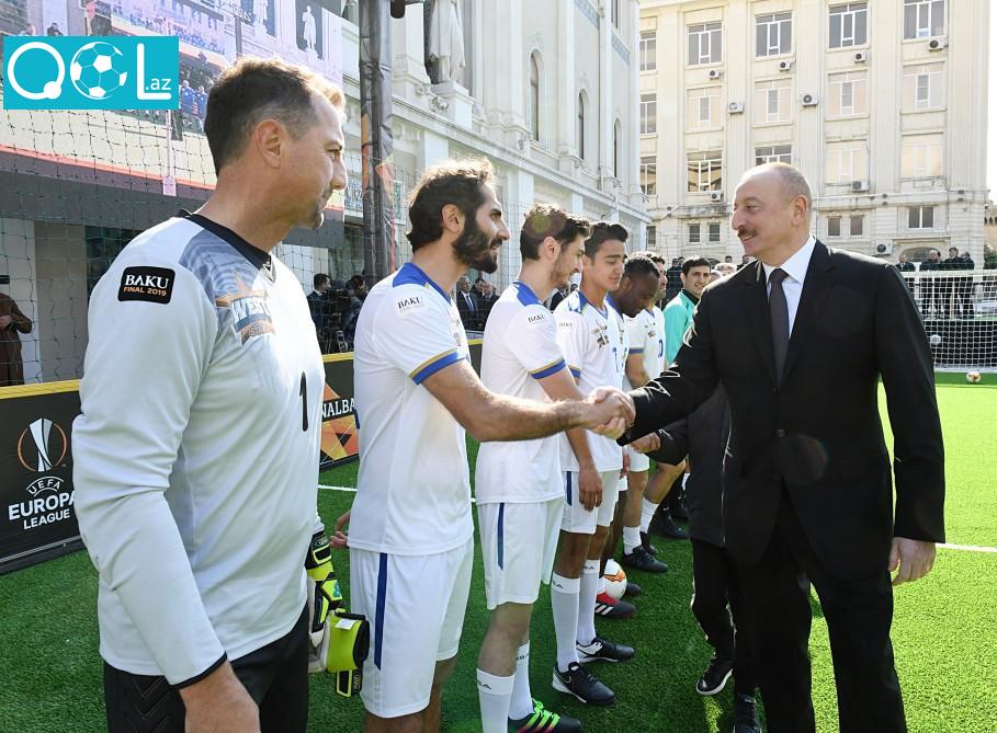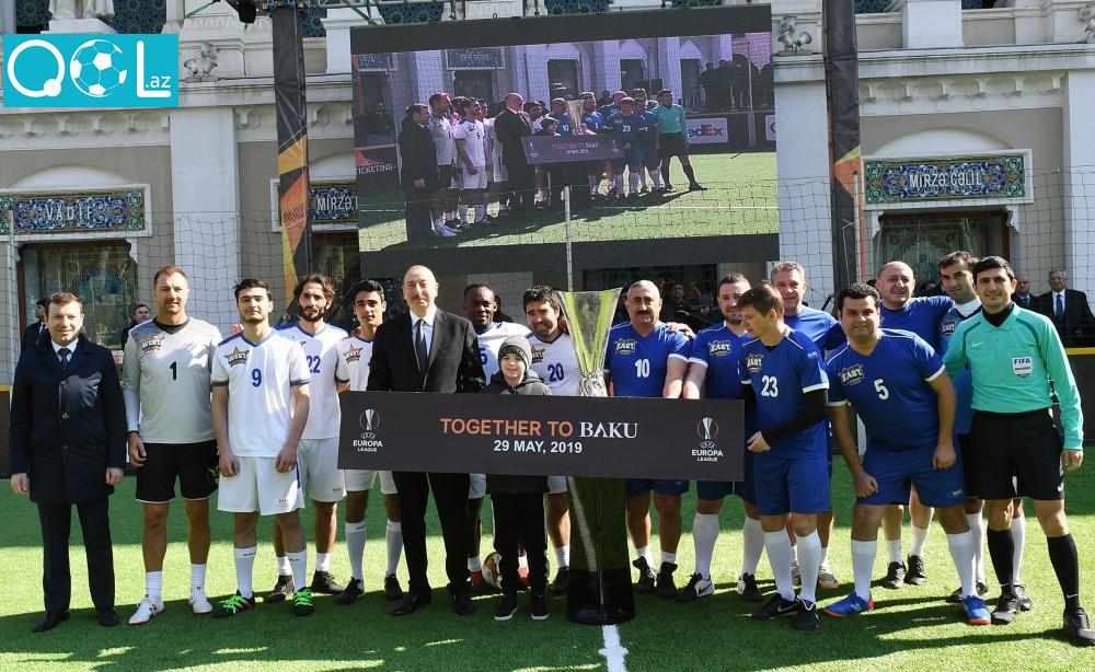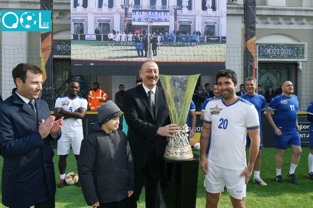Qol.az xəbər verir ki, əvvəlcə ölkə başçısı oyunda iştirak edən futbolçularla görüşüb. Ardınca UEFA Avropa Liqasının kuboku Azərbaycan Respublikasının Prezidenti İlham Əliyevə təqdim edilib.