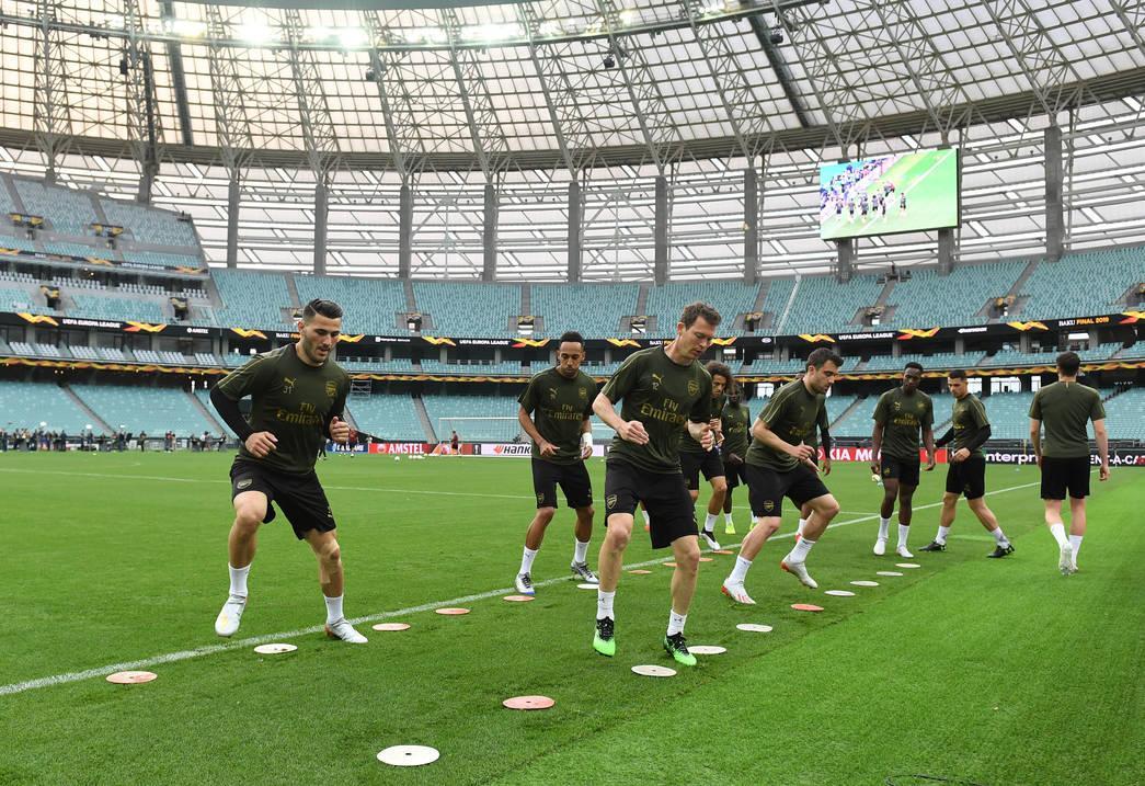 "Arsenal"ın Avroliqanın finalında "Çelsi" ilə oyun öncəsi Bakı Olimpiya Stadionundakı məşqindən şəkilləri təqdim edirik.