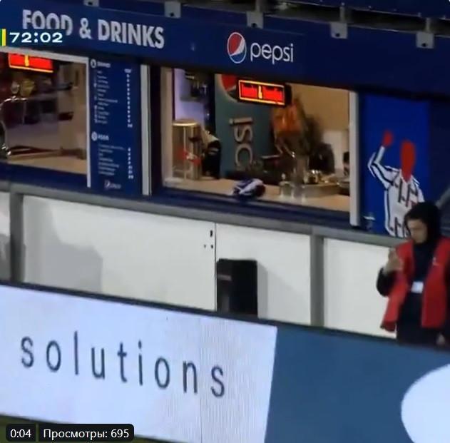 Qapıdan aralı keçən top arxadakı reklam lövhəsinin də üstündən keçərək yeməkxanaya girib. Bu isə orada işləyən xanımı qorxudub.