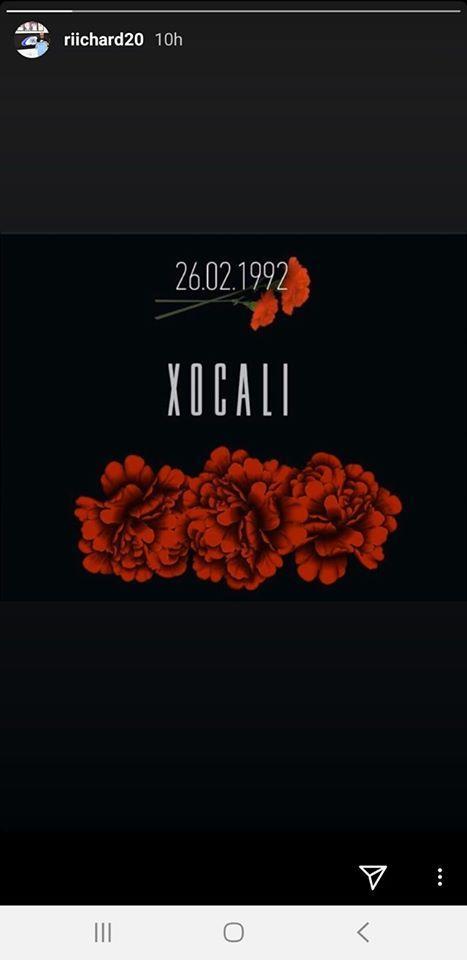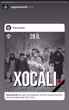 "Qarabağ"ın sabiq futbolçuları - İbrahim Şehiç və Riçard Almeyda, eləcə də hazırda komandada çıxış edən Vaqner Silva Xocalı soyqırımının ildönümünə biganə qalmayıblar.