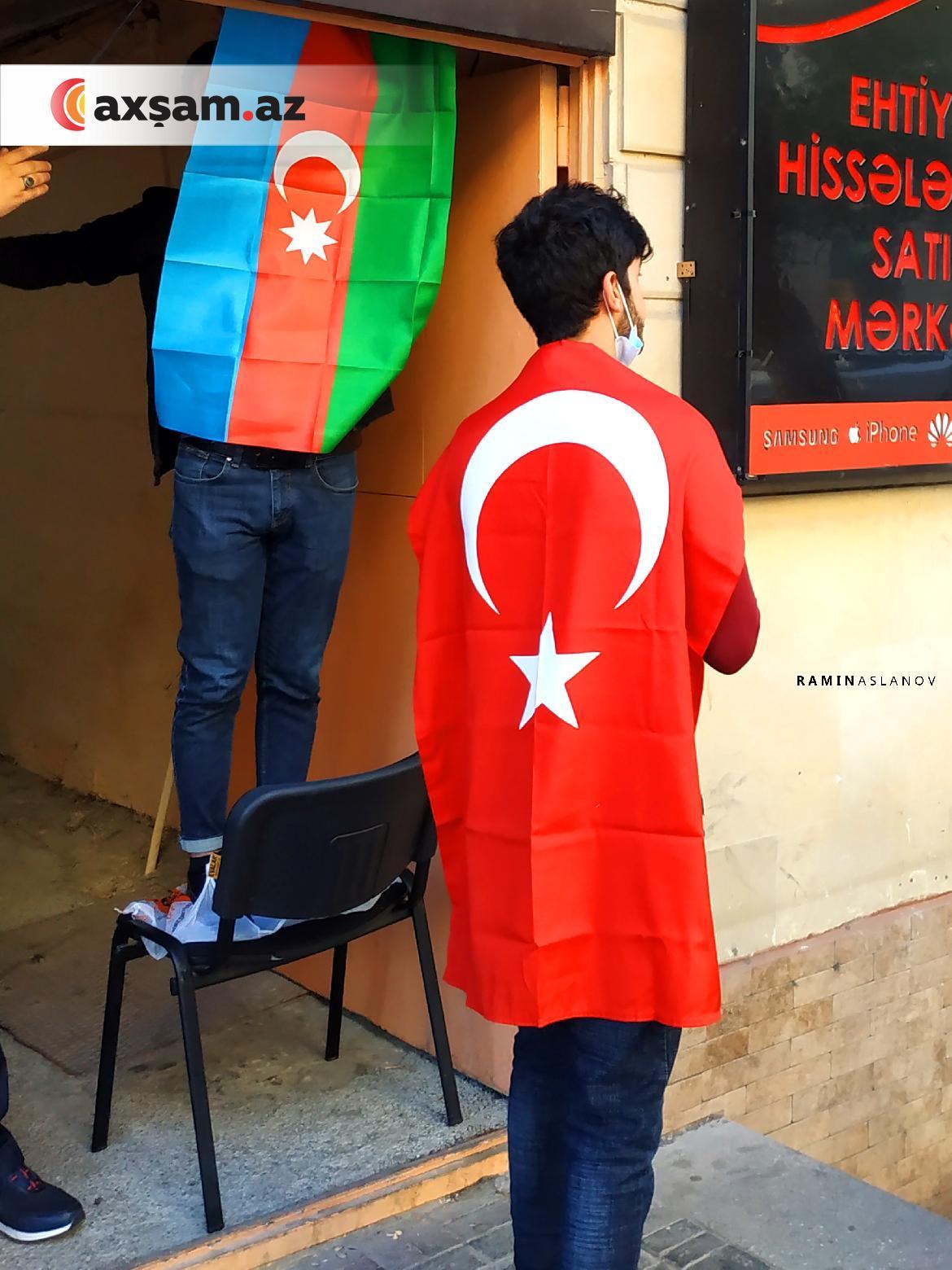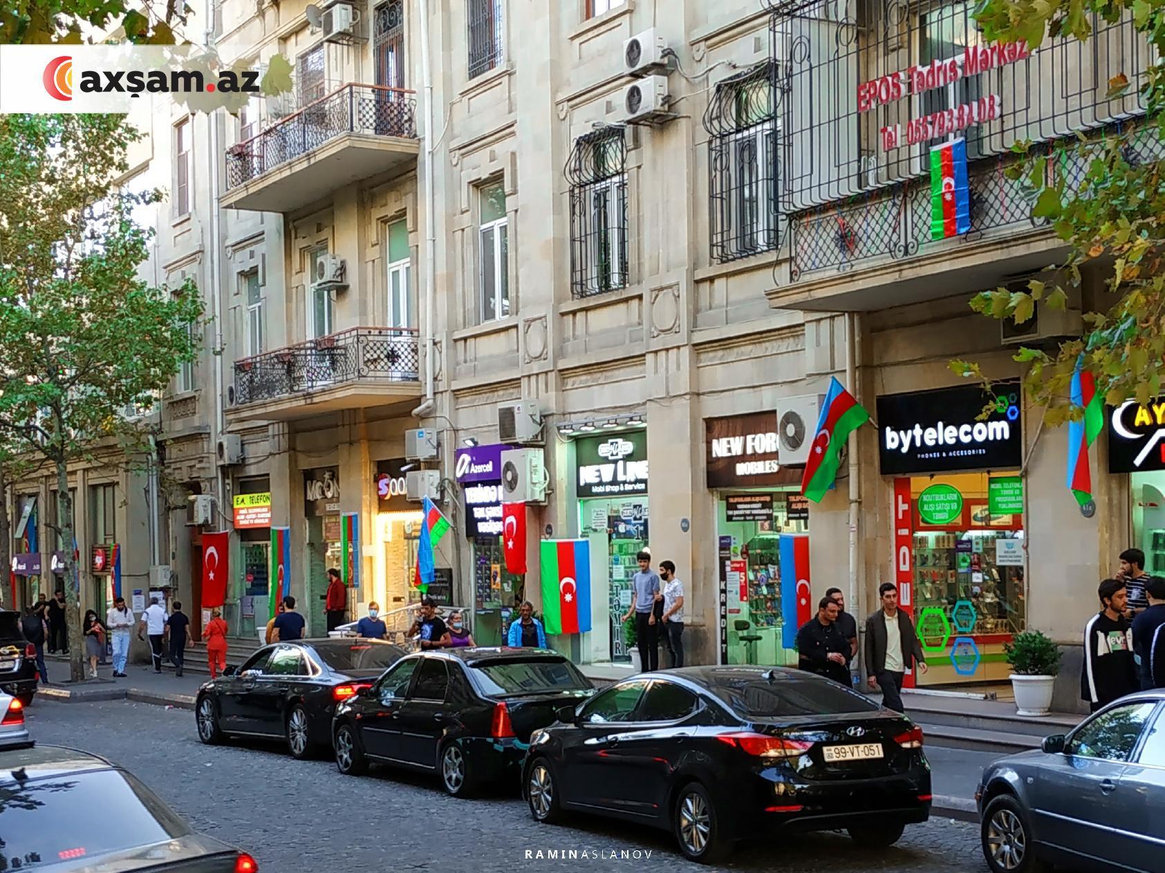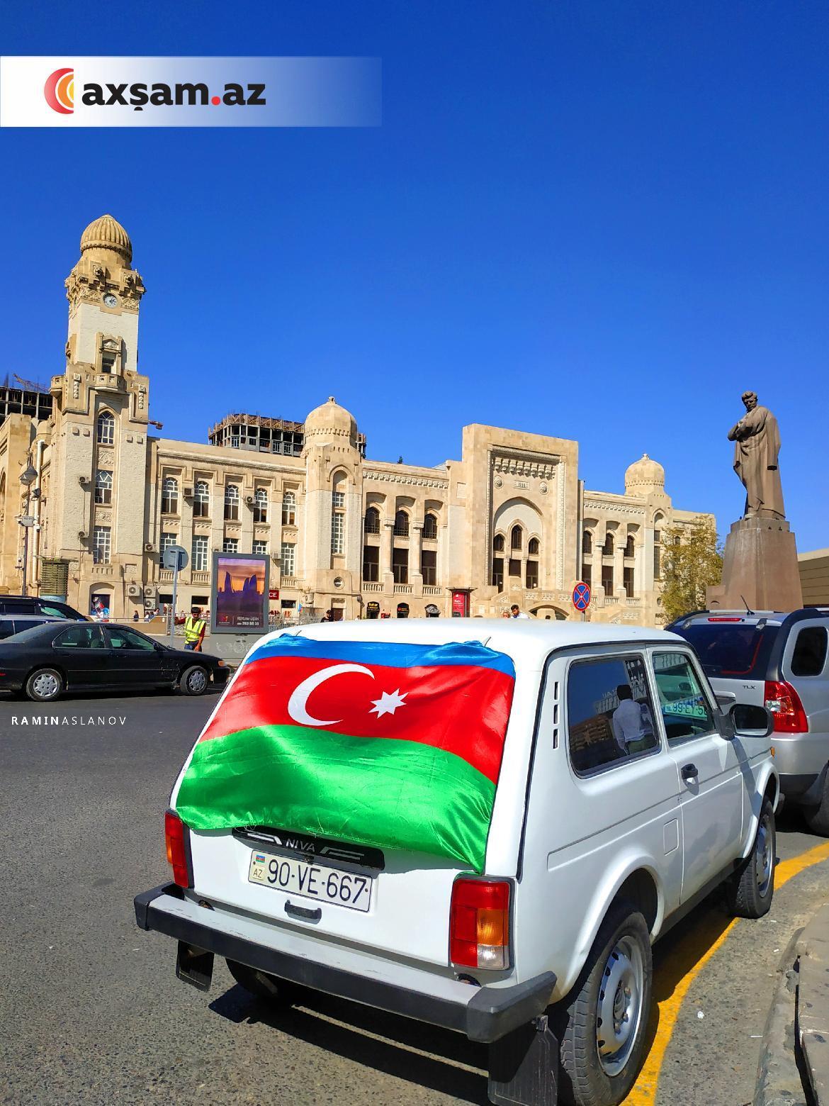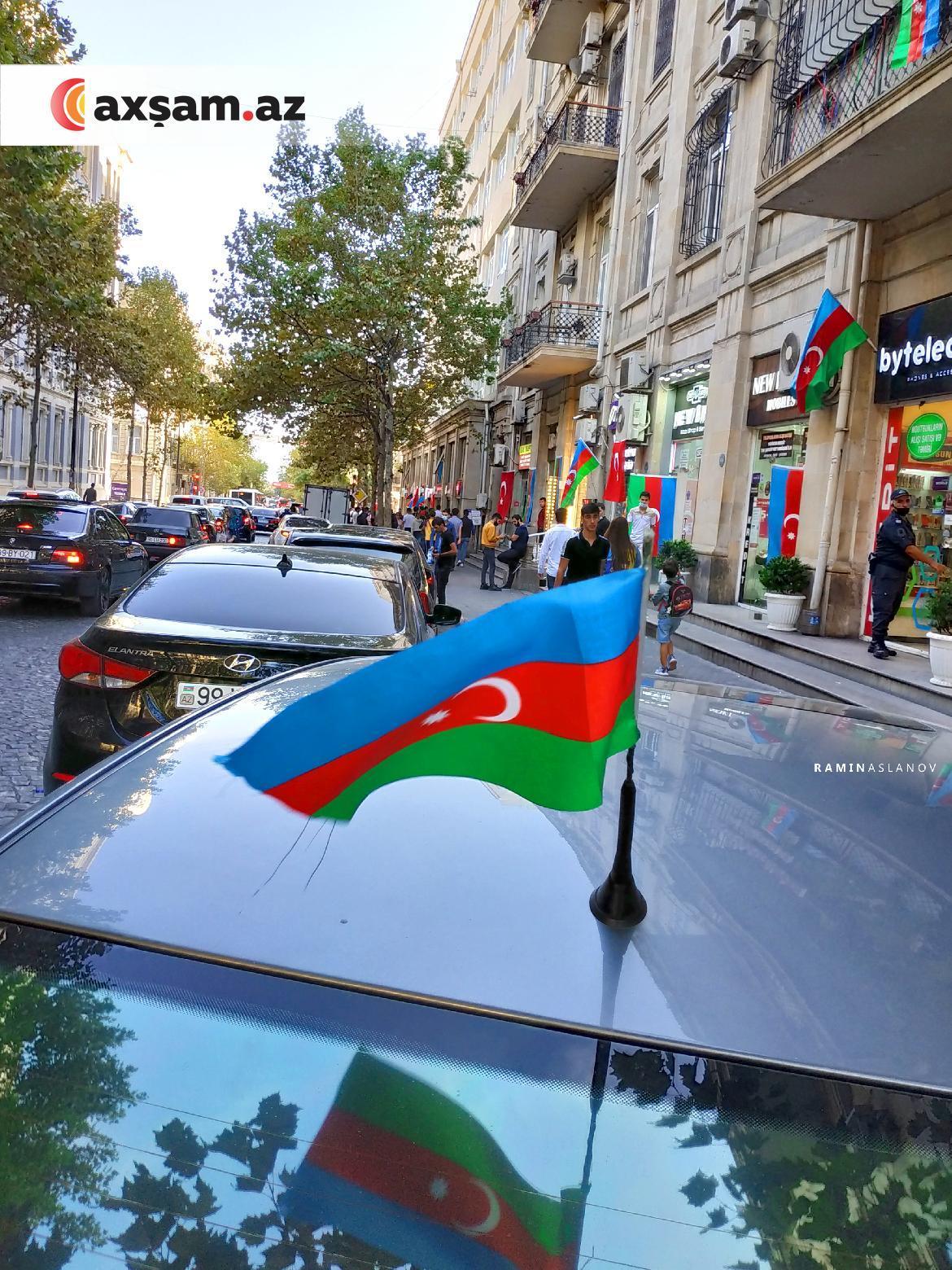 Axşam.az Bakının mərkəzindən qələbə ab-havalı fotolar lentə alıb. Kimi bu sevinci Azərbaycan bayrağını avtomobilindən, evinin eyvanından asaraq, kimi də əlində tutaraq bölüşüb.