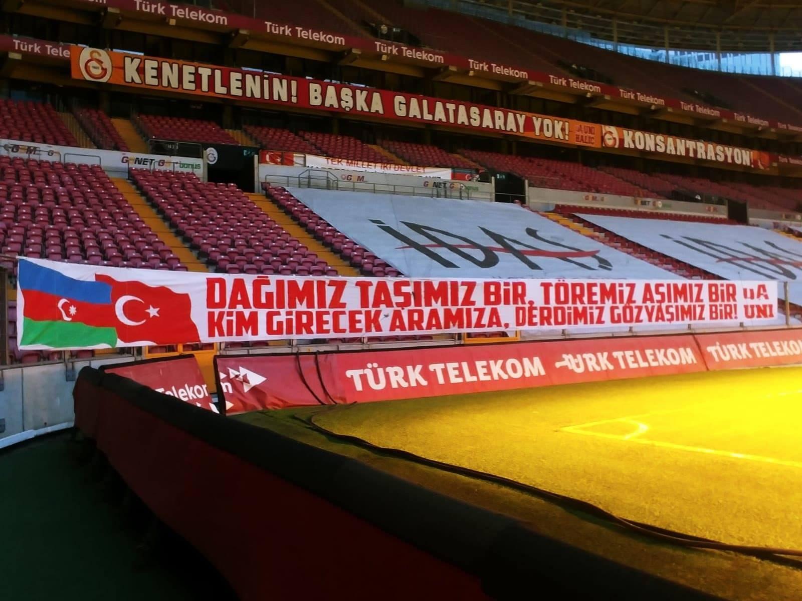 Qol.az xəbər verir ki, İstanbul təmsilçisi Türkiyə Superliqasının 5-ci turunda bu gün Bakı vaxtı ilə saat 21:00-da başlayacaq "Alanyaspor"la ev oyunu öncəsi "Türk Telekom Arena"ya iki ölkə bayrağının yer aldığı pankartlar yerləşdirilib. Pankartlarda Azərbaycan və Türkiyə ilə bağlı şüarlara yer verilib.