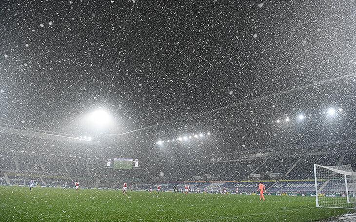 İngiltərə Premyer Liqasının 17-ci turunda ötən gecə keçirilən "Vest Bromviç" - "Arsenal" matçı (0:4) qarlı hava şəraitində oynanılıb.