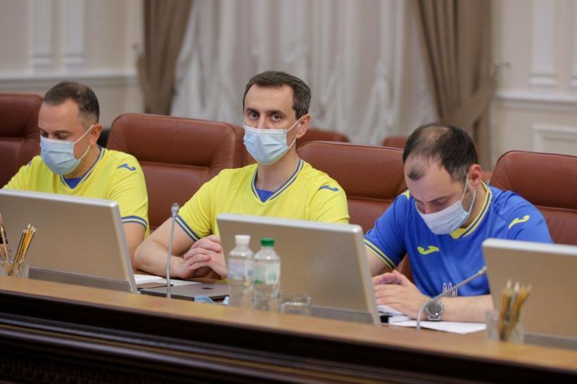Qol.az xəbər verir ki, Baş nazir Denis Şmıqal başda olmaqla nazirlər iclasa milli futbol komandasının formasında qatılıblar. Bununla da onlar milliyə təbriklərini çatdırıblar. Baş nazir dünən Avro-2020-nin İsveçləı oyundakı uğurlu nəticəyə görə komandaya təşəkkürünü bildirib.