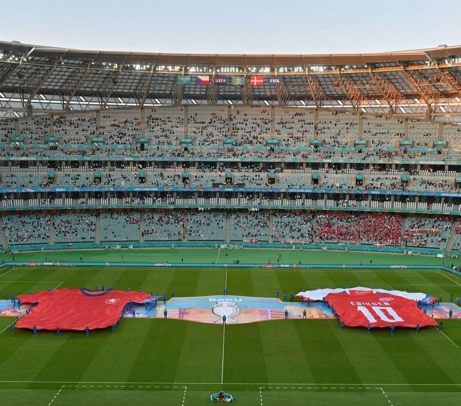 Avro-2020-nin 1/4 finalında hazırda davam edən Çexiya - Danimarka oyunundan əvvəl hər iki komandanın formaları sərgilənib.