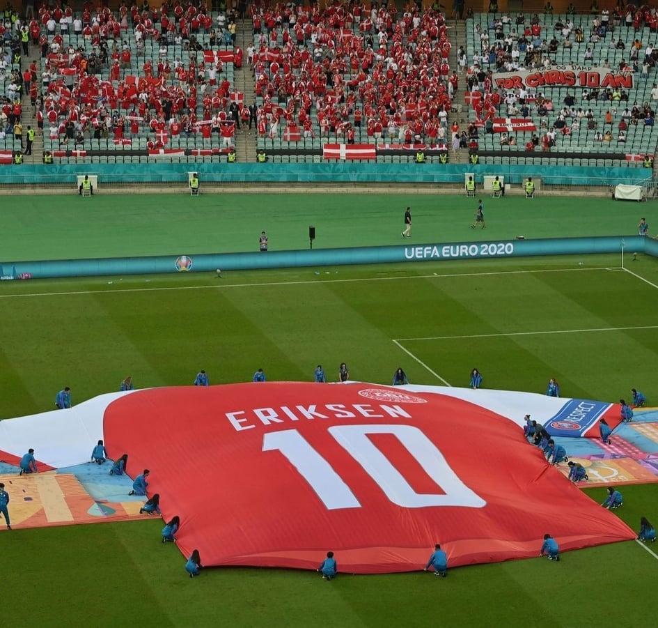 Qol.az xəbər verir ki, Danimarka yığmasının formasının arxasında böyük hərflərlə Eriksen yazısı diqqət çəkib. Bununla da, Avro-2020-nin qrup mərhələsinin ilk turunda Finlandiya ilə matçda huşunu itirən Danimarka yığmasının üzvü Kristian Eriksenin forması arenada göstərilib.