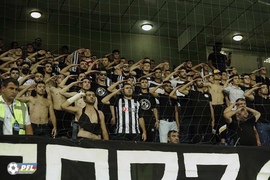 Qol.az xəbər verir ki, matçın 44-cü dəqiqəsində Bakı klubunun azarkeşləri əsgər salamı verməklə sayğı duruşunda dayanıblar. Bununla fanatlar 44 günlük İkinci Qarabağ müharibəsinin qəhrəmanı olan şəhidlərimizin əziz xatirəsini ehtiramla yad ediblər.