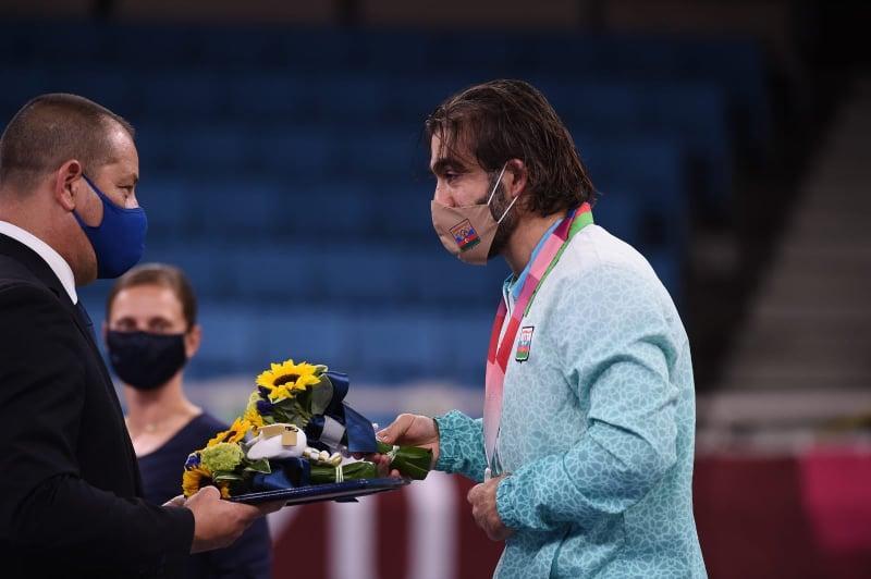 Qol.az xəbər verir ki, medalçılar sırasında Azərbaycan idmançısı Rafael Ağayev də yer alıb. Finalda italiyalı Luci Busaya uduzan karateçimizə gümüş medal təqdim olunub.