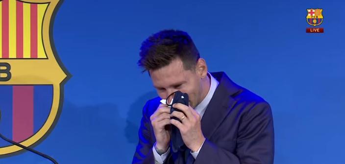 Hücumçu Lionel Messi "Barselona"dan ayrılması münasibətilə keçirdiyi mətbuat konfransında göz yaşlarını saxlaya bilməyib.