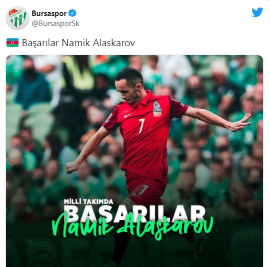 Qol.az xəbər verir ki, birinci liqa klubu "Tvitter" hesabından bununla bağlı paylaşım edib. Bursa təmsilçisi DÇ-2022-nin seçmə mərhələsində İrlandiya ilə bugünkü ev oyunu öncəsi futbolçumuza uğur arzulayıb.