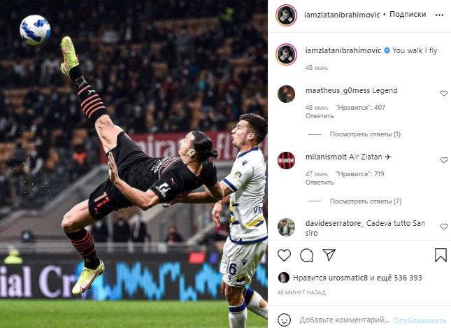 Qol.az xəbər verir ki, 40 yaşlı futbolçu A seriyasının 8-ci turunda "Verona" ilə görüşdə (3:2) topa zərbə vurduğu şəklini paylaşaraq "Siz gəzirsiniz, mən uçuram" yazıb.