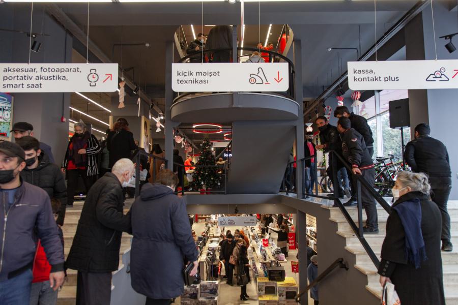 Gəncənin məşhur Bayraq Meydanında yerləşən 890 m 2 əraziyə malik, isti ortamlı mağazanın 1-ci mərtəbəsində dünya brendlərinə aid rəqəmsal, kiçik məişət və nəqliyyat texnikasının, 2-ci mərtəbəsində isə böyük məişət əşyalarının geniş çeşidi zövqlə sərgilənib.