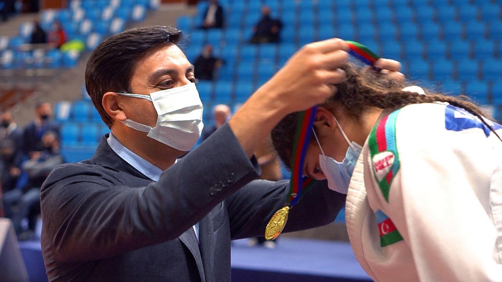 Qol.az xəbər verir ki, ötən gün yarışları izləyən gənclər və idman naziri Fərid Qayıbov 52 kq çəki dərəcəsində qalib və mükafatçı qızları medallarla təltif edərək onlara uğurlar arzulayıb.
