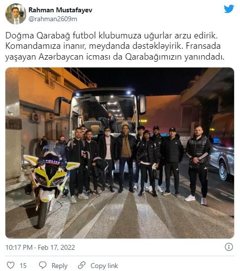 Gənclər və idman naziri Fərid Qayıbov və Azərbaycanın Fransadakı səfiri Rəhman Mustafayev "Qarabağ"ın futbolçuları ilə görüşüb.
