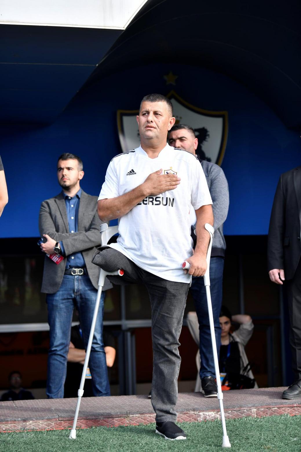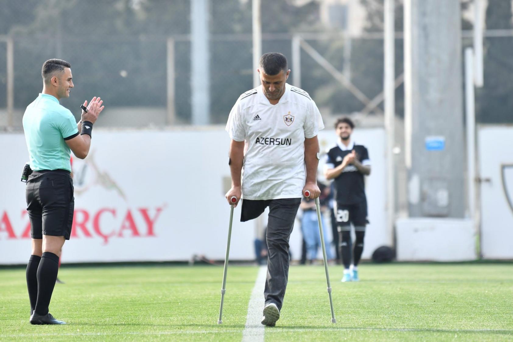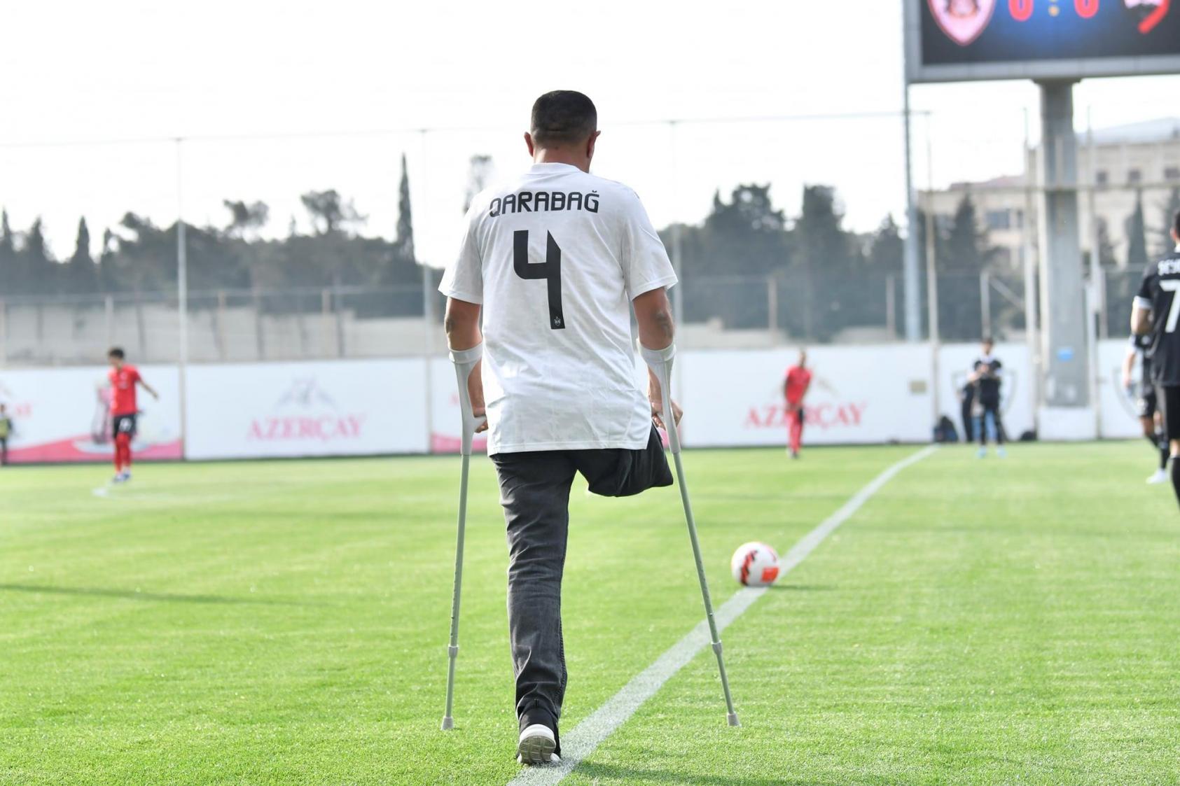 Qol.az xəbər verir ki, "Azərsun Arenada"kı matçda topa ilk toxunuşu “Qarabağ” amputant futbol komandasının kapitanı Elnur Sadiqov edib.