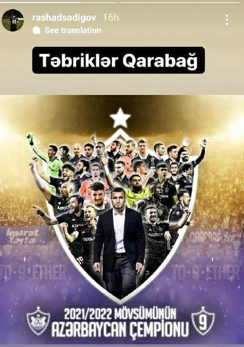 Doqquzuncu dəfə Azərbaycan çempionu olan "Qarabağ" bir çox sabiq futbolçusundan təbrik alıb.