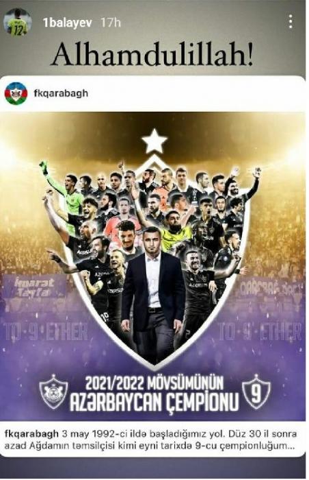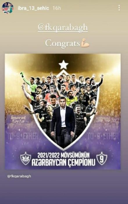 Bosniyalı Asmir Beqoviç və İbrahim Şehiç, braziliyalı Reynaldo Silva da İnstaqram səhifəsində keçmiş komandası ilə bağlı təbrik paylaşımı edib. Millimizin üzvləri, hazırda legioner həyatı yaşayan Mahir Emreli və Emil Balayev də "Qarabağ"ın 9-cu çempionluğunu diqqətdən kənarda qoymayıb.