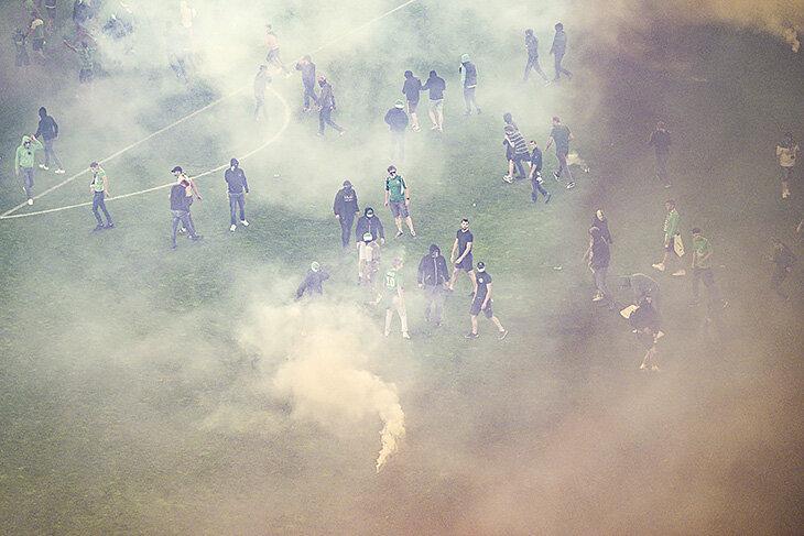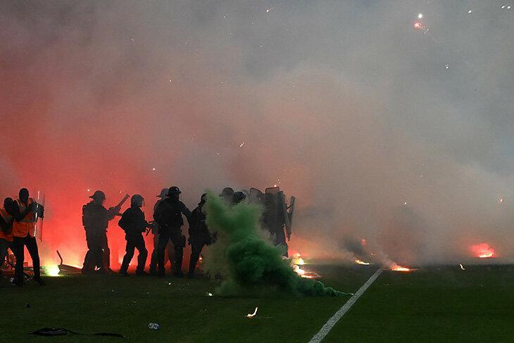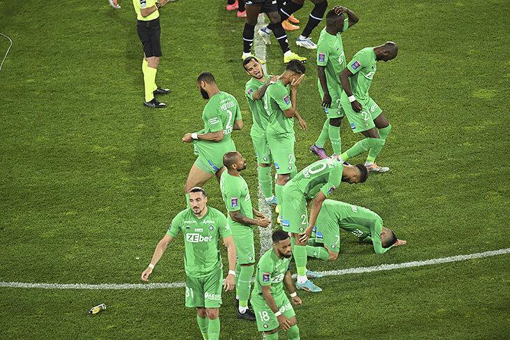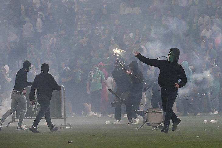 Qol.az xəbər verir ki, penalitlər seriyasında uduzaraq 18 ildən sonra ilk dəfə elitanı tərk edən "Sent-Etyen" klubunun fanatları bunu həzm edə bilməyiblər. Həlledici penalti zərbəsindən dərhal sonra "yaşıllar"ın azarkeşləri meydana axışıb.