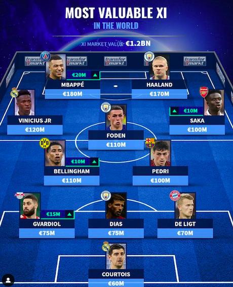 Hücumçular: Kilian Mbappe (PSJ, 180 milyon avro), Erlinq Haaland ("Mançester Siti", 170 milyon avro)