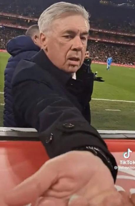 Qol.az xəbər verir ki, bu, ötən gü La Liqanın 18-ci turunda "Aletik" - "Real" oyununda olub. 63 yaşlı mütəxəssis Madrid təmsilçisinin fanatlarının olduğu tribunaya yaxınlaşıb. Ançelotti bu vaxt ağzından saqqız çıxararaq bir azarkeşə verib.