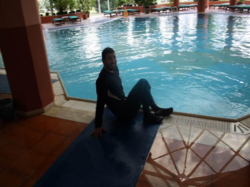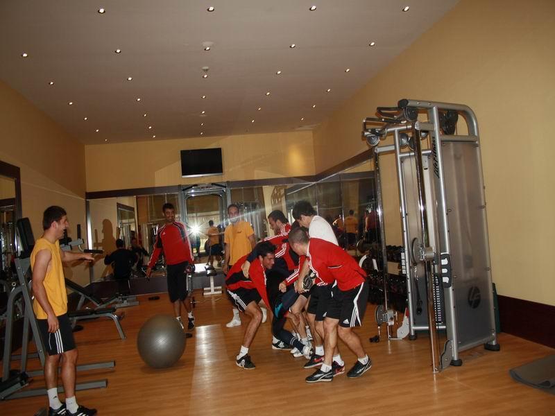 Bundan sonra isə futbolçular fitnesdə məşq edən “Qarabağ”ın qapışısı Fərhad Vəliyevin əli və ayaqlarından tututaraq hovuza tullayıblar. Bu işdə fəalardan olan Rauf Əliyev axır ki, özü suya düşüb. O, Fərhadı hovuza atdıqdan sonra müvazinətini saxlaya bilməyib.