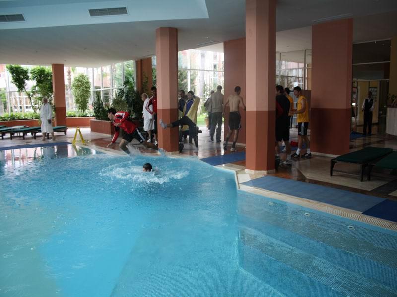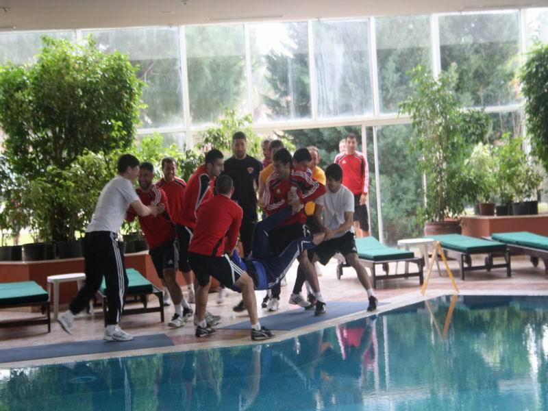 Antalyada təlim-məşq toplanışını davam etdirən “Qarabağ”ın düşərgəsində maraqlı olaylar yaşanıb. Qol.Az-ın klubun rəsmi saytına istinadən yaydığı xəbərə görə, bu gün trenejor zalında məşq etdikdən sonra futbolçular ilk oncə klubun inzibatçısı Elşən Həsənovu hovuza atıblar. Bu zaman hucümçu Rauf Əliyev özü də hovuza düşməyə yaxın olsa da, son anda bundan qaça bilib.