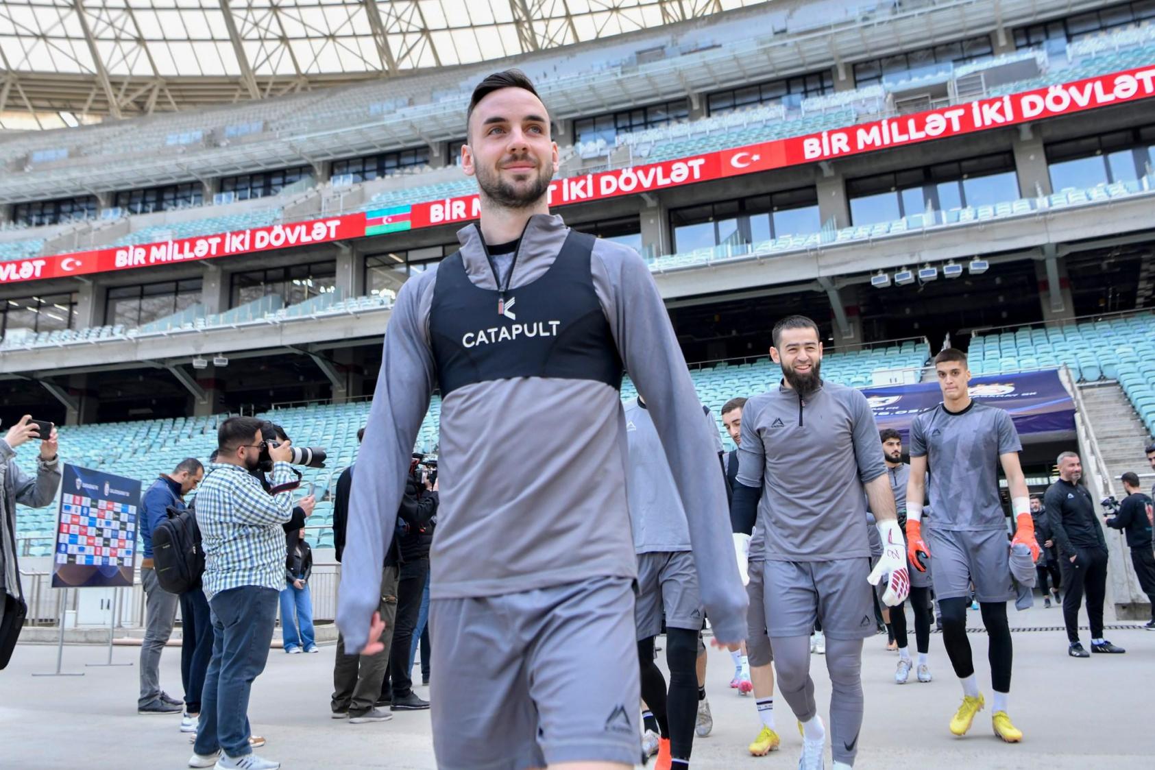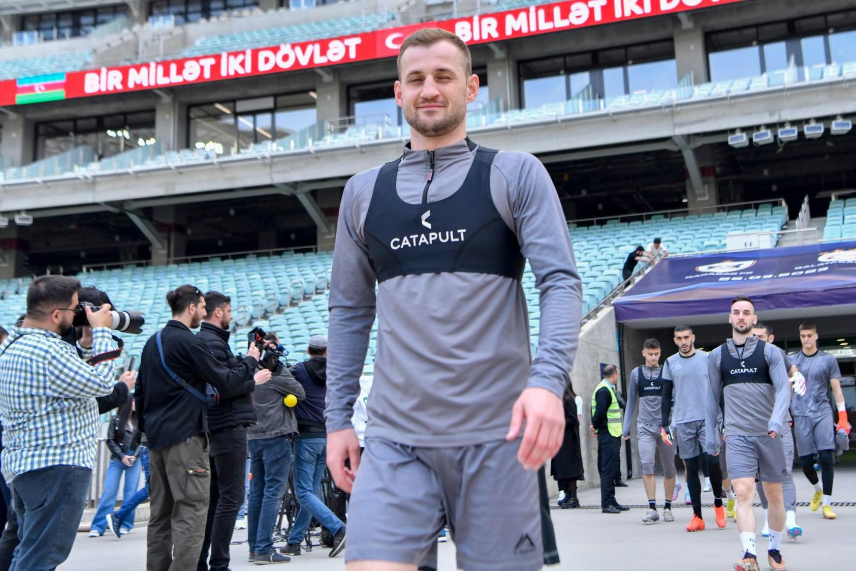 "Qarabağ" sabah "Qalatasaray"la keçirəcəyi xeyriyyə oyunundan əvvəl Bakı Olimpiya Stadionunda məşqə çıxıb.
