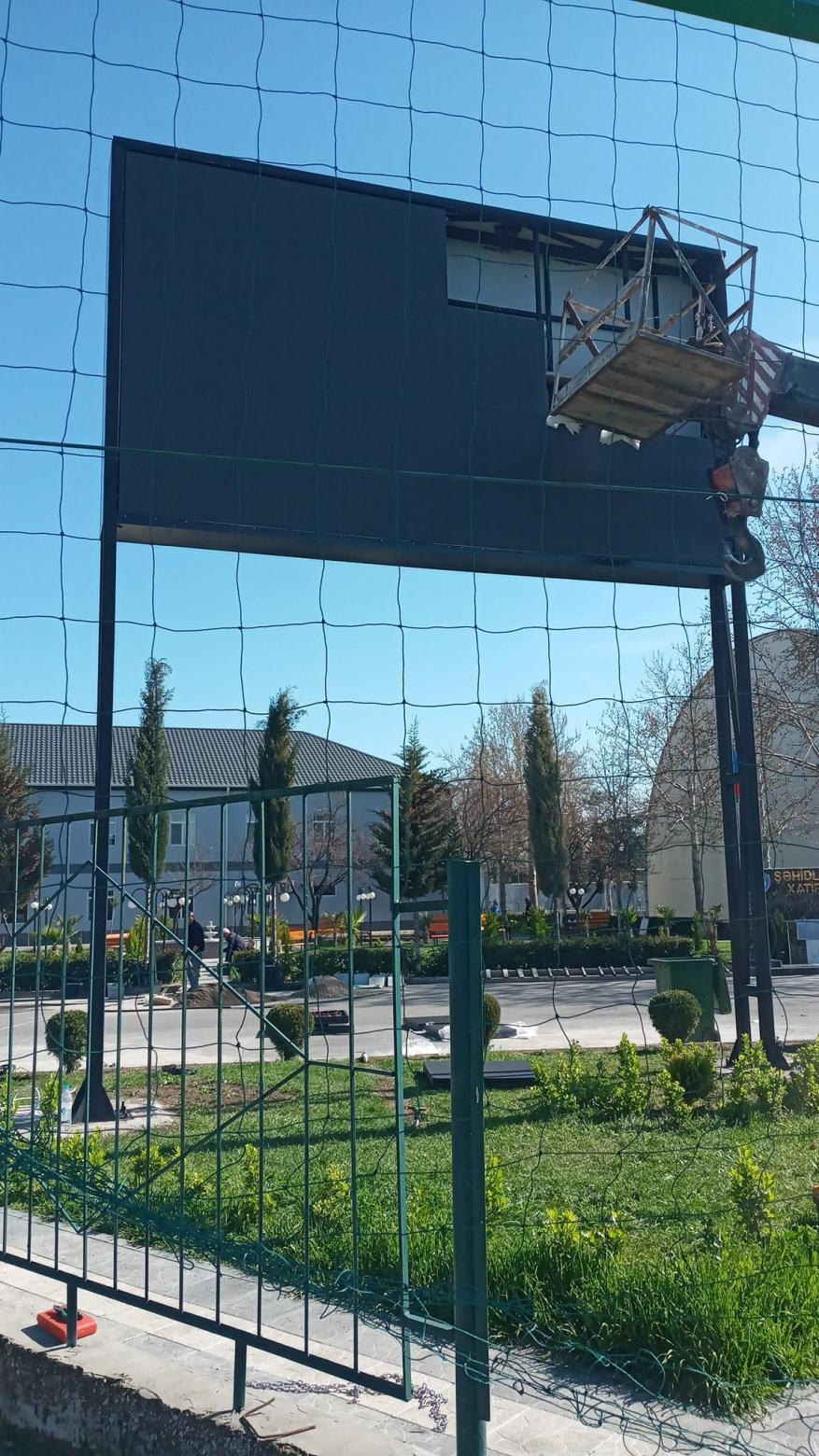 "Turan Tovuz"un ev oyunlarını keçirdiyi Tovuz şəhər stadionunda yeni tablo quraşdırılır.