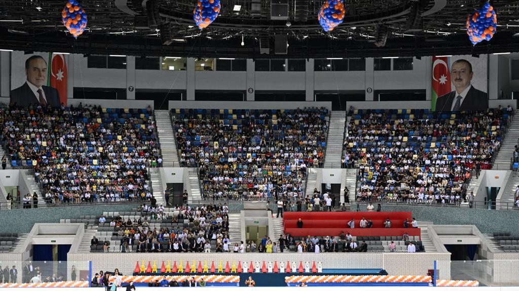 Tədbirin əvvəlində qonaqlar və məktəblilər Dövlət Himnimizi birlikdə ifa ediblər.