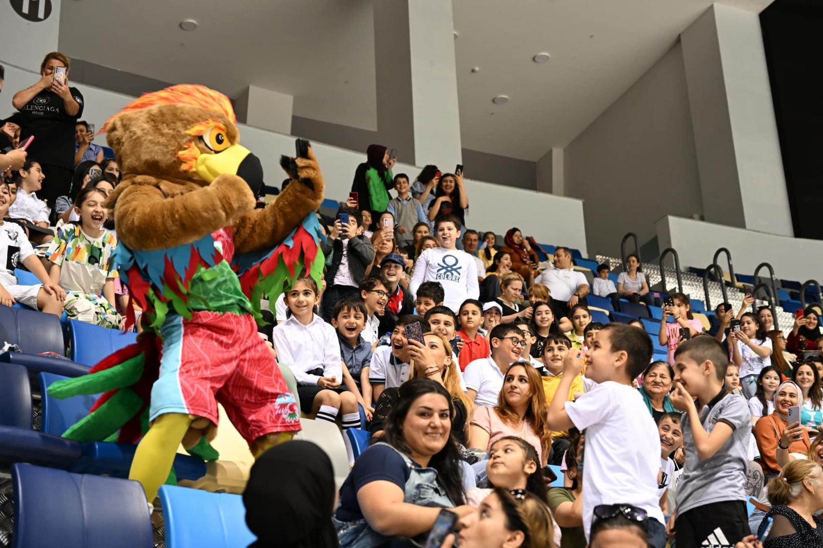 Qol.az xəbər verir ki, qızıl qartal formalı maskot “AZZİ” adlanır və öz dizaynı, adı, forması, üzərindəki rəngləri ilə Qarabağ qartalını simvolizə edir.
