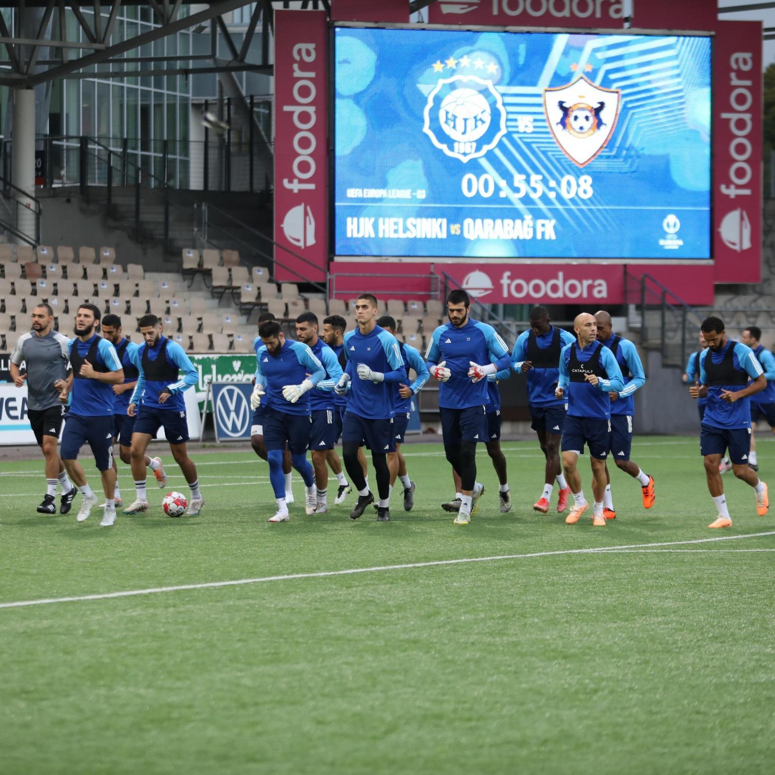 Avropa Liqasının 3-cü təsnifat mərhələsində avqustun 17-i HİK-in qonağı olacaq "Qarabağ" Finlandiyadakı "Bolt Arena"da məşqə çıxıb.