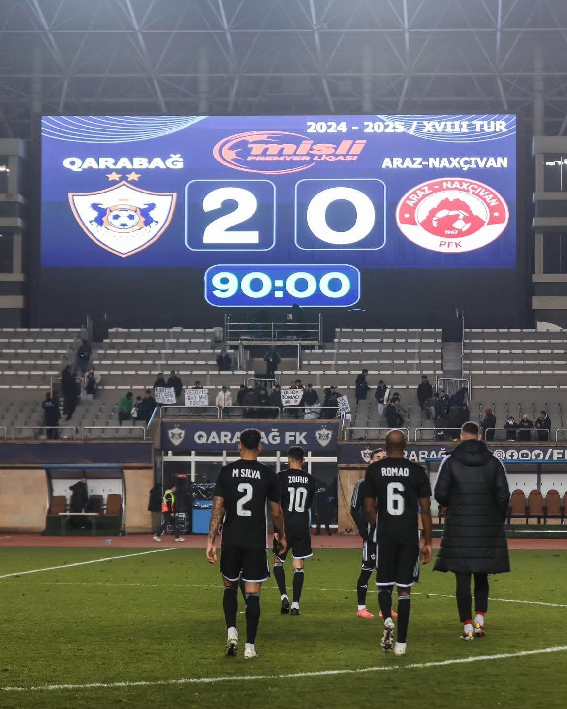 QOL.az xəbər verir ki, turun son oyununda lider “Qarabağ” ən yaxın izləyicisi “Araz Naxçıvan”ı qəbul edib və 2:0 hesablı qələbə qazanıb. Bu qələbə sayəsində Ağdam klubu ilə ikinci yerdəki “Araz Naxçıvan” arasında 8 xallıq böyük fərq yaranıb.